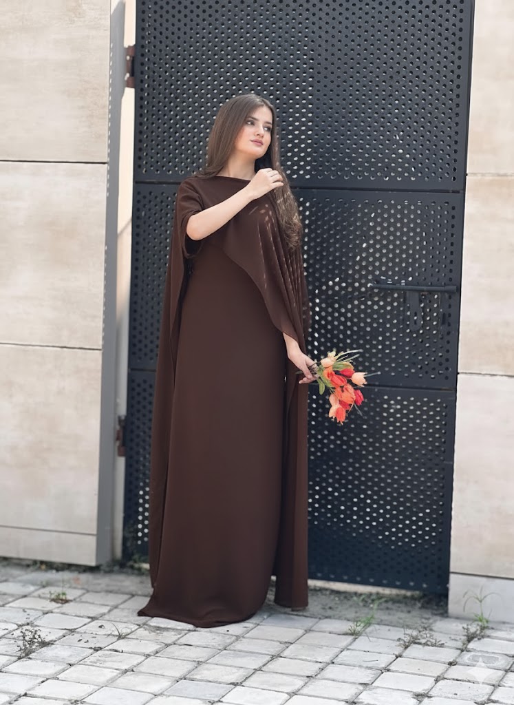 Step into elegance with this beautiful Cape Maxi Dress, designed to give you a graceful and modern look. Made from high-quality chiffon fabric, this outfit features a flowy silhouette with a stylish cape design that adds a touch of sophistication.